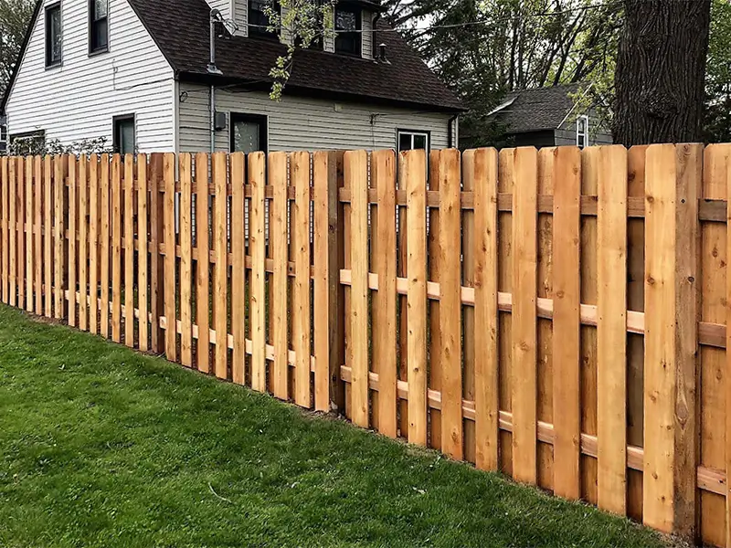 Unique and stylish, the shadowbox fence uses alternating boards on either side, ensuring an attractive look from every angle. Its design promotes better airflow while maintaining privacy, earning it a top spot among wood fencing options in Shoreview.
